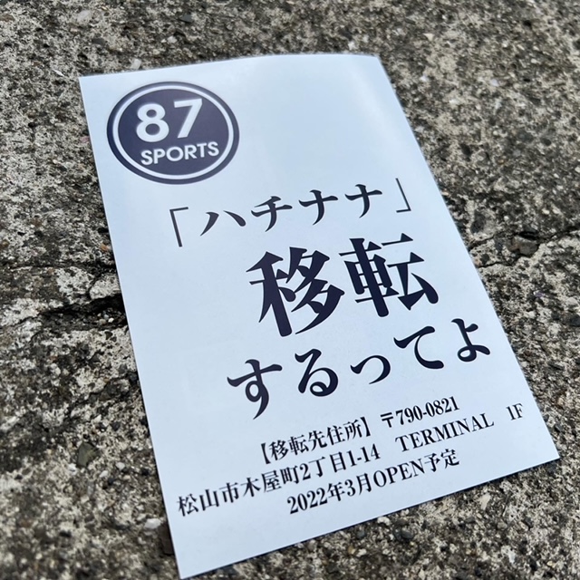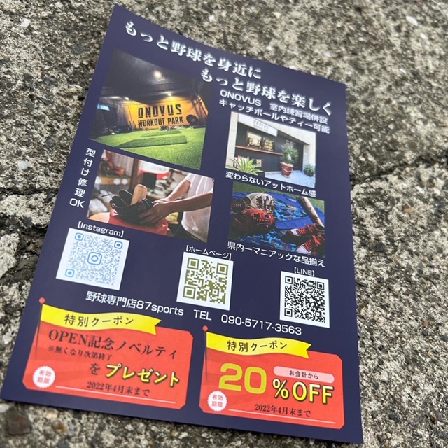 | 店舗名 | 野球専門店 87sports (ハチナナスポーツ) |